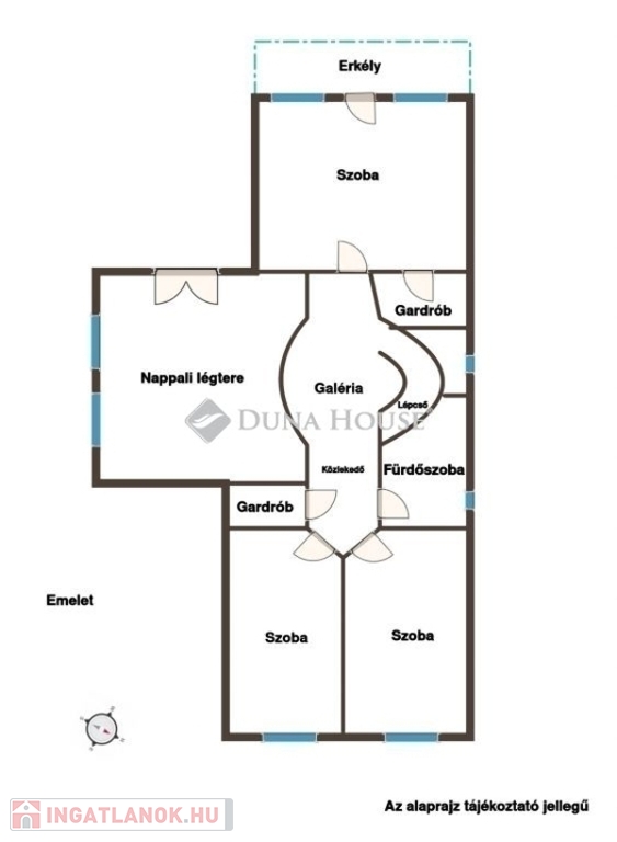 A földszinten a ház szíve egy hatalmas, napfényben úszó, galériás nappali, amely igazi éke az otthonnak: meleg, tágas és barátságos, tökéletes helyszíne a mindennapoknak és a vendégfogadásnak is. Mellette külön étkező, konyha kamrával, szülői hálószoba gardróbbal, külön fürdőszoba WC-vel, vendég WC, valamint egy praktikus mosókonyha is megtalálható. Az emeleten a galéria mellett három hálószoba, két kisebb gardrób, valamint egy zuhanyzós fürdőszoba WC-vel kapott helyet ez a szint biztosítja a teljes privát szférát.