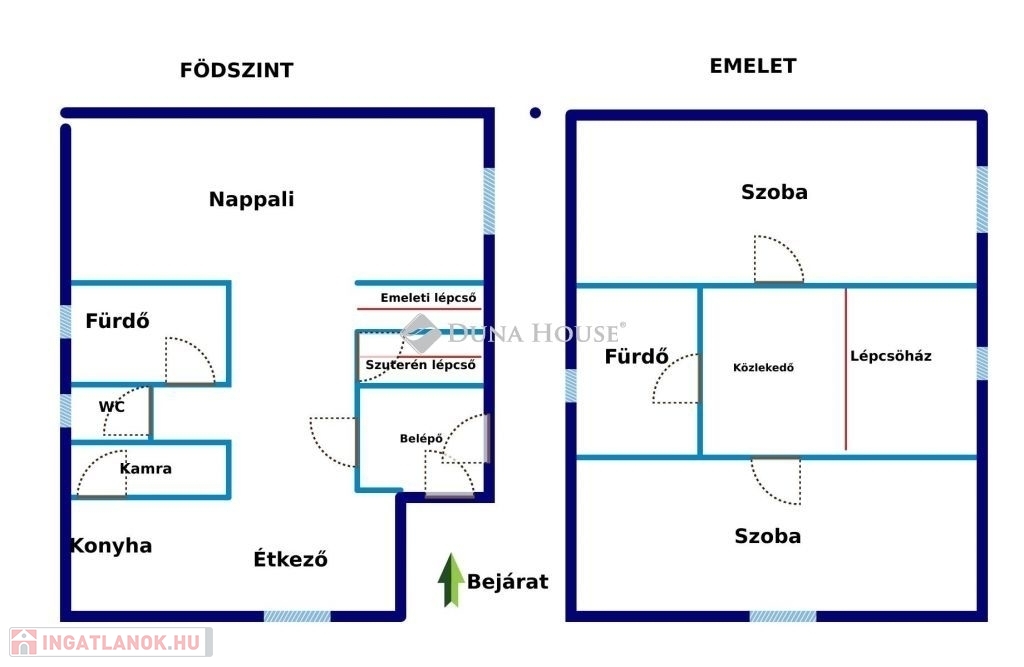 A földszint jó állapotú, azonnal költözhető, míg a tetőtéri szint (2 szoba + fürdő) esztétikai felújítást igényel, így az új tulajdonos saját igényei szerint fejezheti be.