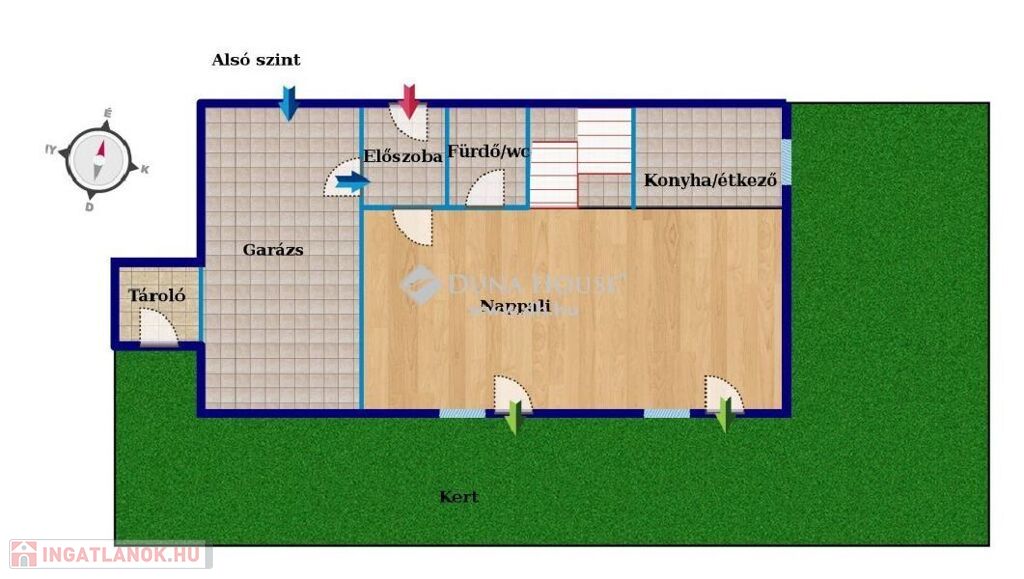 A jól átgondolt tervezésnek köszönhetően minden ingatlan saját kertkapcsolattal (kb. 250 m2) , garázzsal (17 m2) rendelkezik, az épületek a tárolók által érnek csak össze.