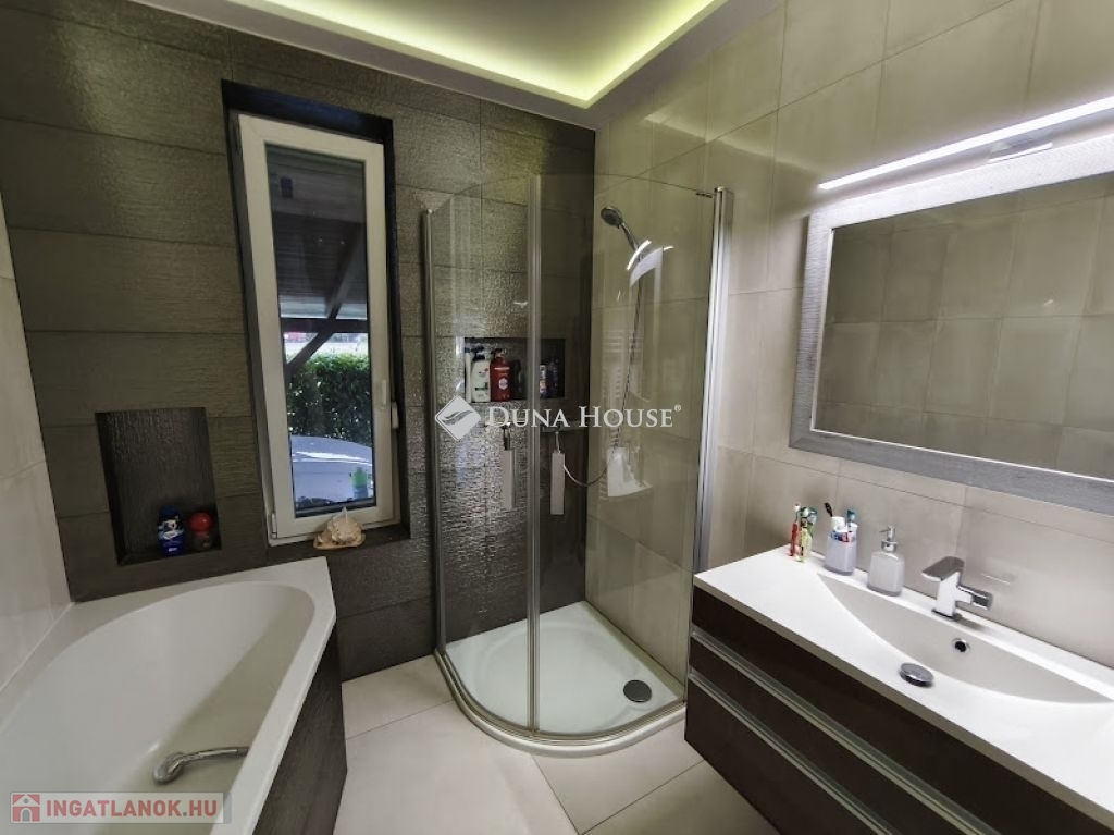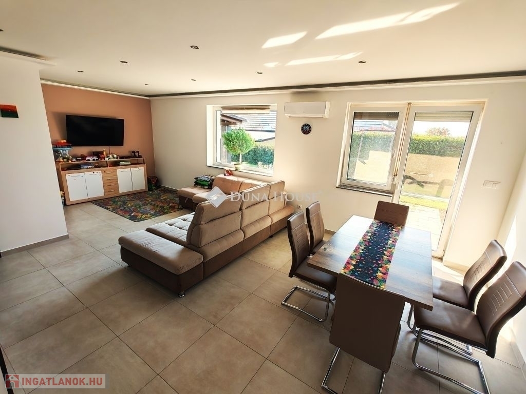Eladó családi ház Kozármislenyben minőségi, 2019-ben épült otthonHa számodra fontos a minőség, a biztonság és az alacsony fenntartási költség, akkor ez a ház ideális választás.A 90 m² hasznos alapterületű ellátott családi ház egy 450 m²-es, gondosan karbantartott telken található. Déli fekvése miatt világos, napfényes otthon, amely az utca utolsó házaként teljes nyugalmat biztosít nincs átmenő forgalom.Elrendezés és lehetőségek:Tágas amerikai konyhás nappali, amelyből igény esetén egy kb. 7 m²-es plusz szoba alakítható ki2 hálószobaElőszoba, háztartási helyiség, gardróbFürdőszoba WC-vel + külön WC45 m²-es terasz, ebből 15 m² fedett, közvetlen kapcsolatban az étkezővelA nappali központi része a kandalló, amely meghitt hangulatot teremt a hideg hónapokban.Kert és udvar:12 m²-es kis ház (szerszámok, kerti eszközök tárolására)12 méter hosszú fedett autóbeálló, 2 autó számára is kényelmesGondozott kert automata öntözőrendszerrelMűszaki tartalom és extrák:30-as Porotherm tégla + 15 cm dryvit szigetelés alacsony rezsiGázkazán: radiátor és padlófűtés, helyiségenként szabályozhatóKlíma berendezés hűtő-fűtő funkcióvalVízlágyító berendezésRedőnyök és szúnyoghálók minden nyílászárónBeépített szekrényekEz az ingatlan azok számára ideális, akik igényes, jól megépített otthont keresnek nyugodt környezetben, de értékelik Pécs közelségét is.Hívjon mielőbb, mert az ilyen házak ritkán kerülnek piacra és gyorsan elkelnek!