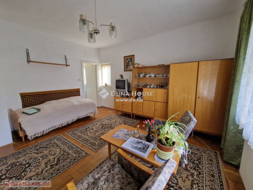 Eladó Orfű főutcájában egy, az 1970 évek végén épült, kétszintes, masszív, átlagos, jó állapotú, tégla szerkezetű családiház. A lakóház földszintjén előtér, wc, konyha, kamra, szoba, zuhanyzó és egy garázs került kialakításra. Az emeleti szintet az előtérből egy belső lépcsőn keresztül érhetjük el, ahol egy közlekedőből nyílóan 3 szobát, wc-t, fürdőt és egy kamrát közelíthetünk meg. Kisebb átalakítással két önálló lakássá alakítható át. A ház fűtése vegyes tüzelésű kazánnal, valamint egyedileg fatüzelésű kályhákkal megoldott, míg a melegvízellátást villany és fa tüzelésű bojler szolgáltatja. A belső és a külső nyílászárók hagyományos fa szerkezetűek. Az ingatlan egy 1353m2 nagyságú telken helyezkedik el, részben füvesített, részben konyhakertként hasznosított. A hátsó udvari melléképületben egy tároló és egy pince kapott helyett.Az ingatlan Pécstől 15 km-re, Orfű lakóövezetének csendes utcájában, az Orfűi malmoktól 10 perc és a Pécsi tótól 2 perc sétára található. Az ingatlan egyedülálló természeti és épített környezete, infrastruktúrája, elhelyezkedése és kialakítása alapján mind a nyugodt, kényelmes lakhatást, mind vendéglátásban befektetést keresőknek alkalmas lehet.Orfűn kisebb lakóingatlan beszámítás lehetséges értékegyeztetéssel. További kérdés esetén hívjon bizalommal.