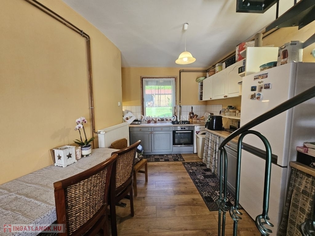 Különleges lehetőség Orfű szívében, panorámás ház eladó a Pécsi-tó felett!Baranya megye egyik legkedveltebb üdülőtelepülésén, Orfűn kínálunk eladásra egy egyedi adottságokkal rendelkező ingatlant, amely kiváló választás lehet két generáció számára vagy akár vendégház üzemeltetésére is.Az összesen 122 m²-es családi ház egy csendes, átmenőforgalomtól mentes utcában található, közvetlenül a Pécsi-tó felett, lélegzetelállító tóra és erdőre néző panorámával. A tó gyalogosan 5 perc alatt elérhető. Az ingatlan két szinten, két külön bejáratú lakrészből áll, így akár két önálló lakóegységként is használható.Mindkét lakrész hasznos alapterülete 61-61 m².Az alsó szinten nappali, konyha-étkező és fürdőszoba található. A felső szint tágas előtérrel/közlekedővel rendelkezik, innen nyílik két különálló hálószoba, ahonnan szintén élvezhetjük a panorámát. Az ingatlan téliesített, állandó lakhatásra alkalmas, fűtéséről külön szabályozható és mérhető gázközponti fűtés gondoskodik. Az egyik lakrészben cserépkályha is növeli a komfortérzetet. A meleg vizet jelenleg villanybojler szolgáltatja, de kisebb átalakítással kombi gázkazán is beépíthető. Az udvar tágas és gondozott, ideális pihenésre, kikapcsolódásra. A nappaliból egy nagyméretű, közös panorámás terasz nyílik, amely alatt egy hasonló méretű tárolóhelyiség is rendelkezésre áll.Ez az ingatlan ideális választás lehet: két generáció együttélésére, nyaralóként, vagy akár vendégházként való működtetésre is!Ne hagyja ki ezt a páratlan lehetőséget Orfűn ritka alkalom ilyen adottságú, panorámás ingatlanhoz jutni a tó közelében!