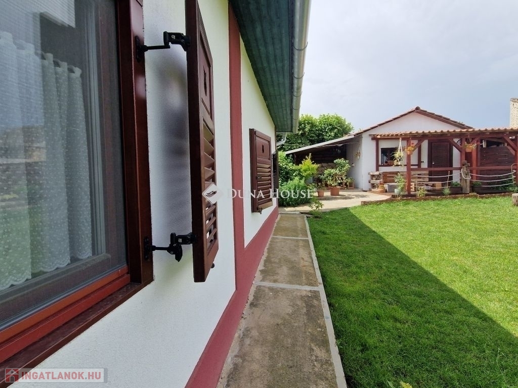 **Eladó felújított parasztház Pécsváradon, Baranya megyében!**Egy kivételes lehetőség vár Önre Pécsváradon, az Zengő lábánál! Eladó egy pár éve szakszerűen, és teljeskörűen felújított, 1950-es években épült, vegyes falazatú, hosszú parasztház 1000nm nagyságú parkosított telken! Az ingatlan a múlt és a jelen tökéletes harmóniáját nyújtja, ahol a régi idők hangulatát modern kényelmi elemek teszik teljessé.**Főbb jellemzők:**- **Telek mérete:** 1000 m², parkosított környezetben, amelyben kerti kiülő, sütögető található, így ideális helyszín a családi és baráti összejövetelekhez.- **Ház alapterülete:** 120 m², egy szint- **Helyiségek:** 2 hálószoba ( 3 szobává alakítható), 36 m²-es nappali, konyha-étkező, kamra, fürdő, WC- **Felújítás:** Teljes tetőszerkezet csere, új nyílászárók, hideg- és melegburkolatok cseréje, új konyhabútor, fürdő és WC felújítása, új gázkazán, 32 amperre bővített áramellátás, teljesen új villany- és vízhálózat, spalettás fa ablakok- ** Fűtés:** Az otthon melegéről gáz cirkó fűtés mellet egy a nappaliban található csodás kandalló és 2 db klíma gondoskodik.- **Melléképületek:** Borospince, több kisebb melléképület, kerti tároló- **Védelmi rendszer:** Kamera rendszerrel ellátott- **Garázs:** 16 m²-es önálló garázs-**Extrák:** A konyhabútor a vételár részét képezi, további bútorok megegyezés szerint.Ez a bájos egyszintes ház meghitt és otthonos légkört biztosít, kiváló állapotban van, azonnal költözhető. Ne hagyja ki ezt a páratlan lehetőséget, hívjon még ma, hogy megtekintse ezt ez egyedülálló parasztházat Pécsváradon! Várjuk hívását!