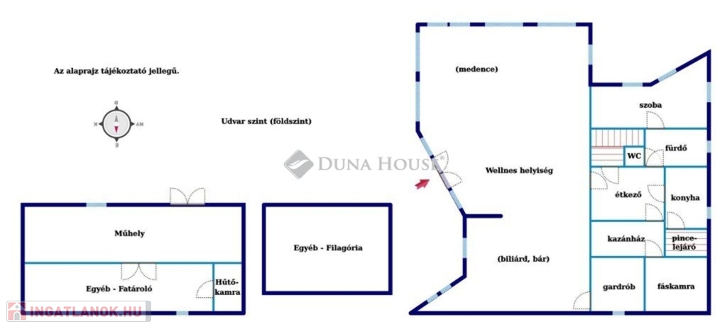 Ugyancsak ezen a szinten került kialakításra a több, mint 100 nm-es wellness helyiség 6x3 nm-es beltéri fűthető medencével (ami betonozott és csempézett), biliárd teremmel, bársarokkal, társalgóval.
