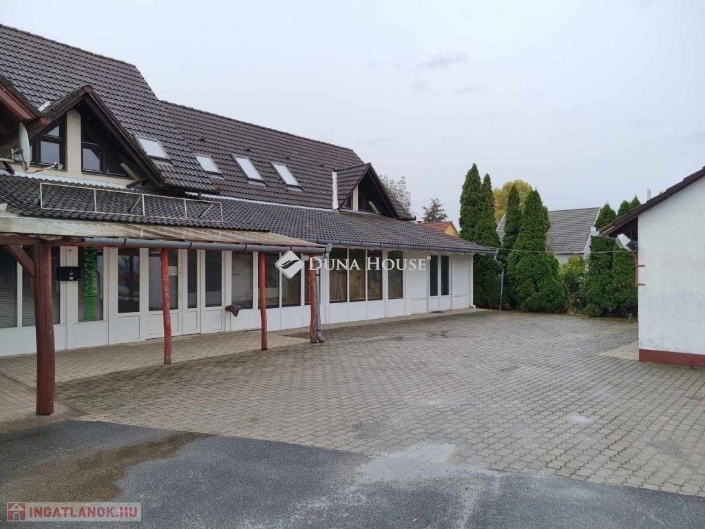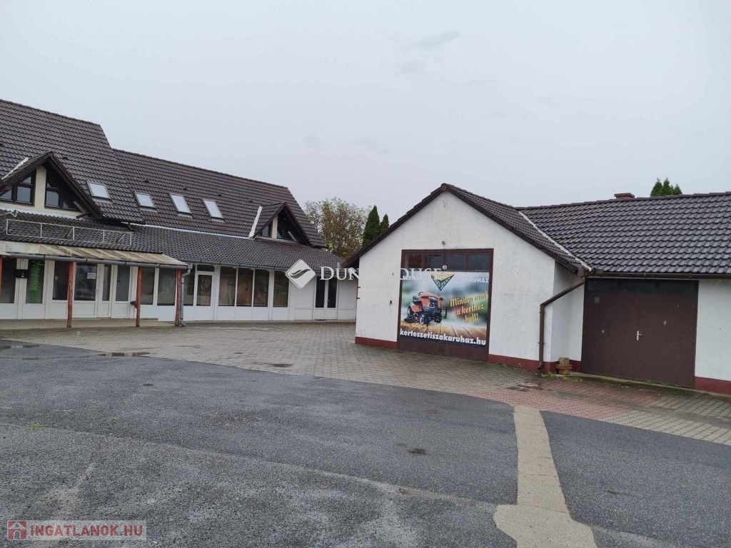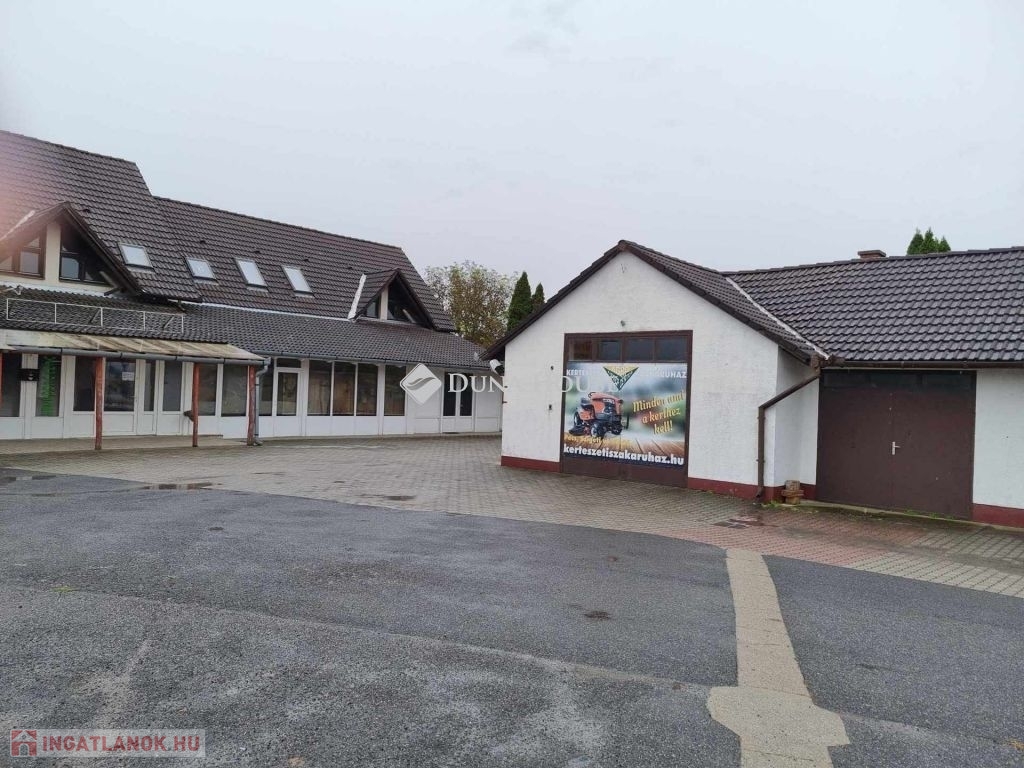Közvetlenül a 6 számú főút mellett 200m2 üzlet, 130 m2 lakás, 200 m2 raktár, térköves parkoló eladó