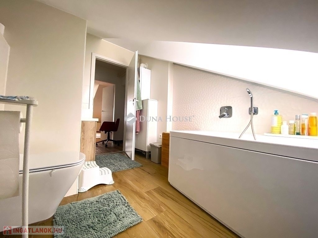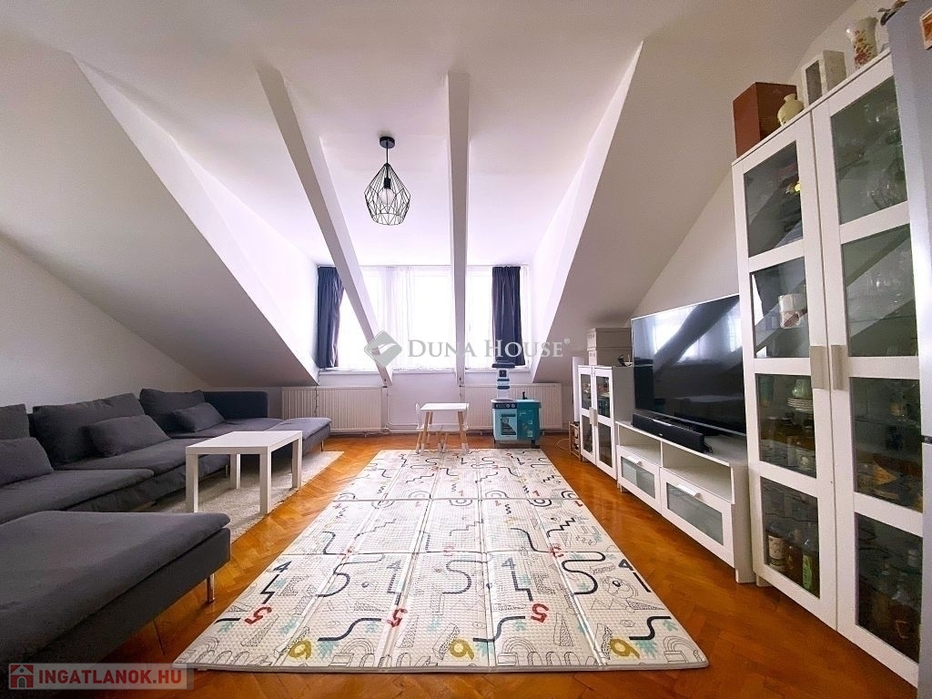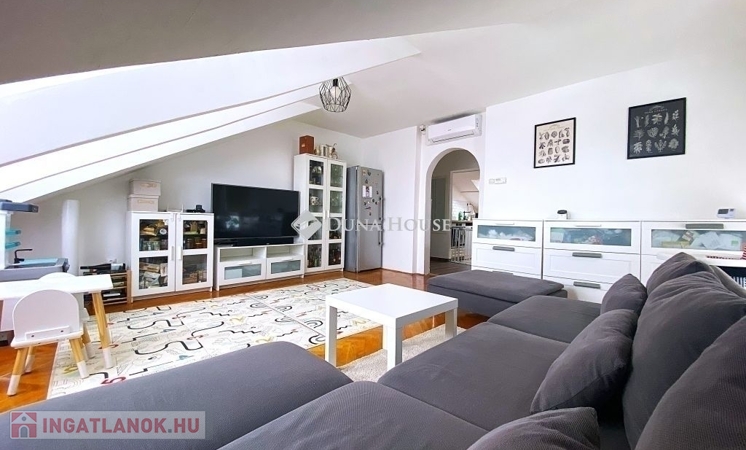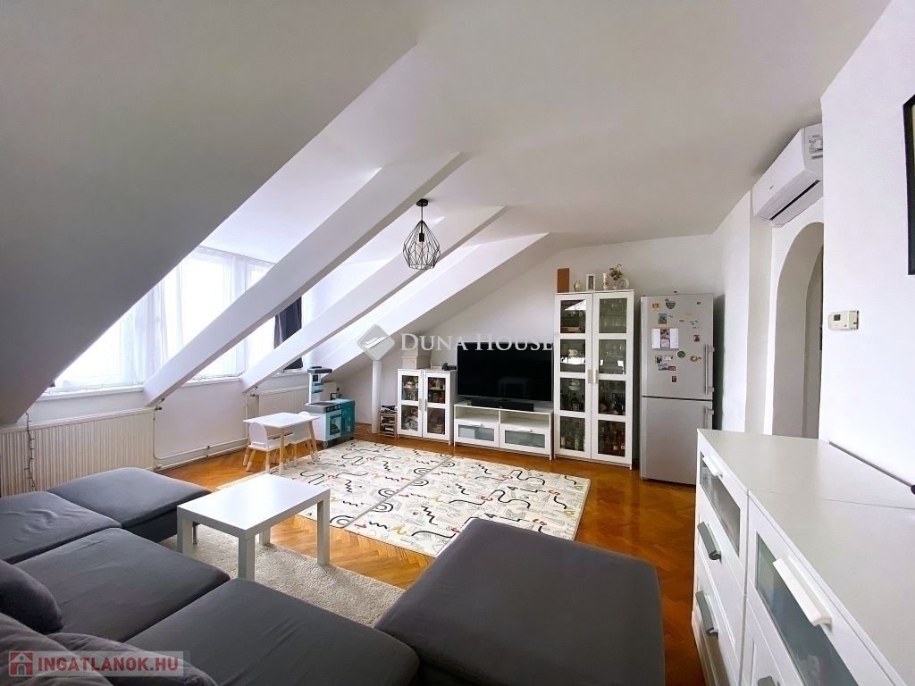 Pécsen, a közkedvelt Bánki Donát utcában eladó egy kiváló adottságokkal rendelkező tetőtéri téglalakás!A lakás bruttó 80 m²-es, nettó 50 m², míg a hasznos alapterülete 65 m², elosztása pedig rendkívül praktikus és élhető. A jól átgondolt alaprajznak köszönhetően 2 külön nyíló szoba és tágas nappali biztosítja a kényelmes életteret.A folyosóról nyílik egy kis háztartási helyiség, ahol a mosógép és szárítógép kényelmesen (hangszigetelten) elfér.Az ingatlan jó lokációban, gyerekbarát környezetben helyezkedik el, csendes, mégis jól megközelíthető környéken.Műszaki felszereltsége és állapota kiváló:- minőségi bejárati és beltéri ajtók- gáz-cirkó fűtés- a fürdőszobában padlófűtés- klimatizált, így nyáron is komfortosIdeális választás családoknak vagy befektetőknek egyaránt, akik egy jó elrendezésű, igényes otthont keresnek Pécs egyik kedvelt részén.