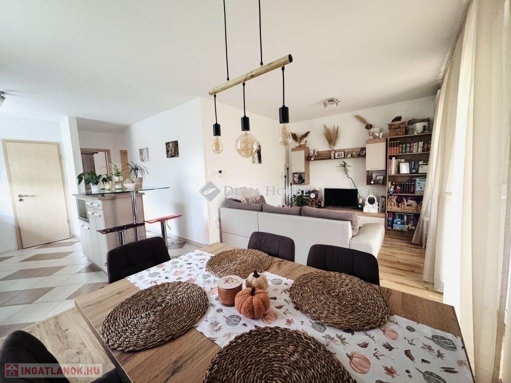 Az ingatlan amerikai konyhás nappaliból, két kényelmes hálószobából, külön fürdőből és WC-ből áll. A lakáshoz tartozik egy nagy méretű, fedett terasz, valamint egy kis, saját kertkapcsolat, ami tökéletes helyszín a pihenésre vagy baráti összejövetelekre.