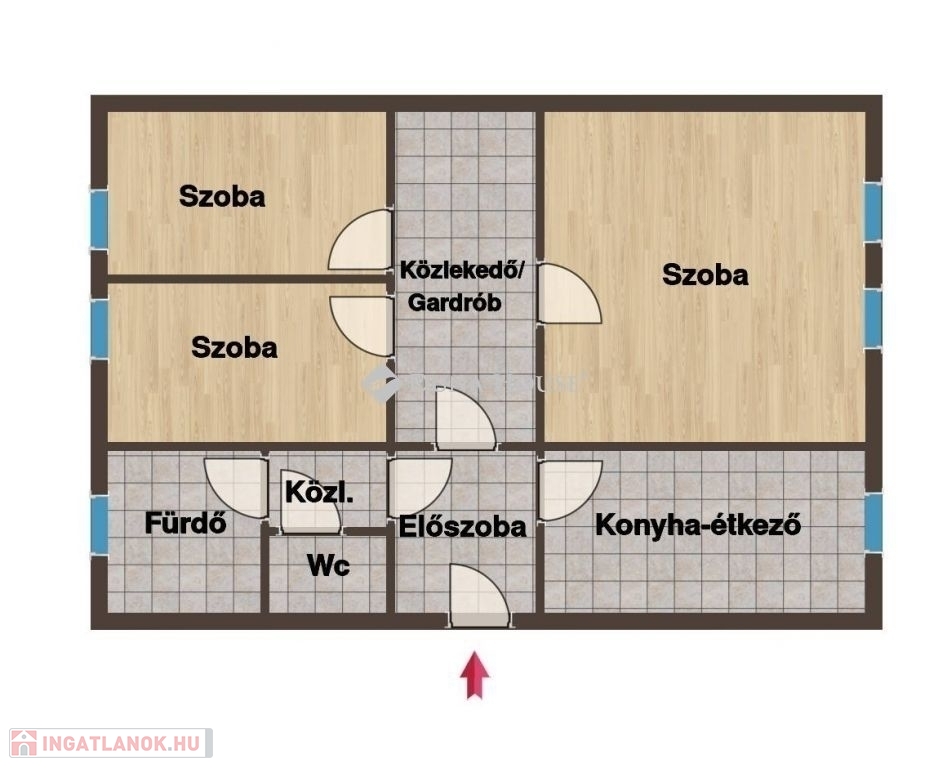 Az ingatlan elosztása lehetővé teszi amerikai konyha-nappali+3 háló kialakítását.